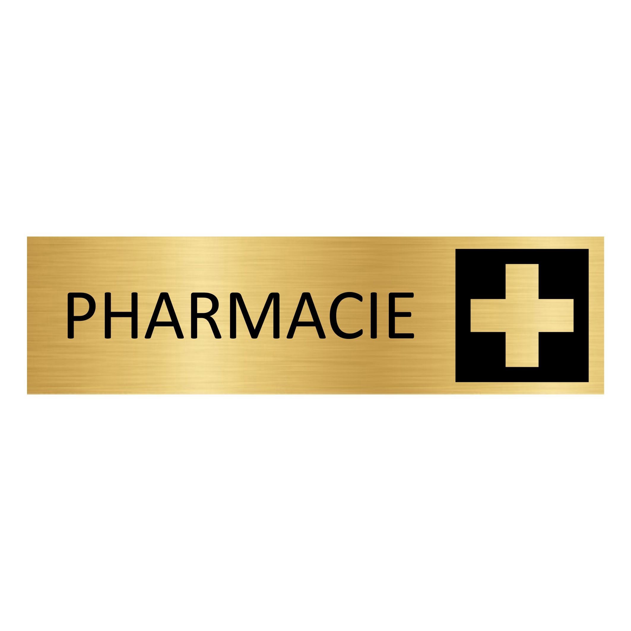 Plaque de porte pictogramme Pharmacie - aluminium doré - 165 x 45 mm - avec ruban adhésif
