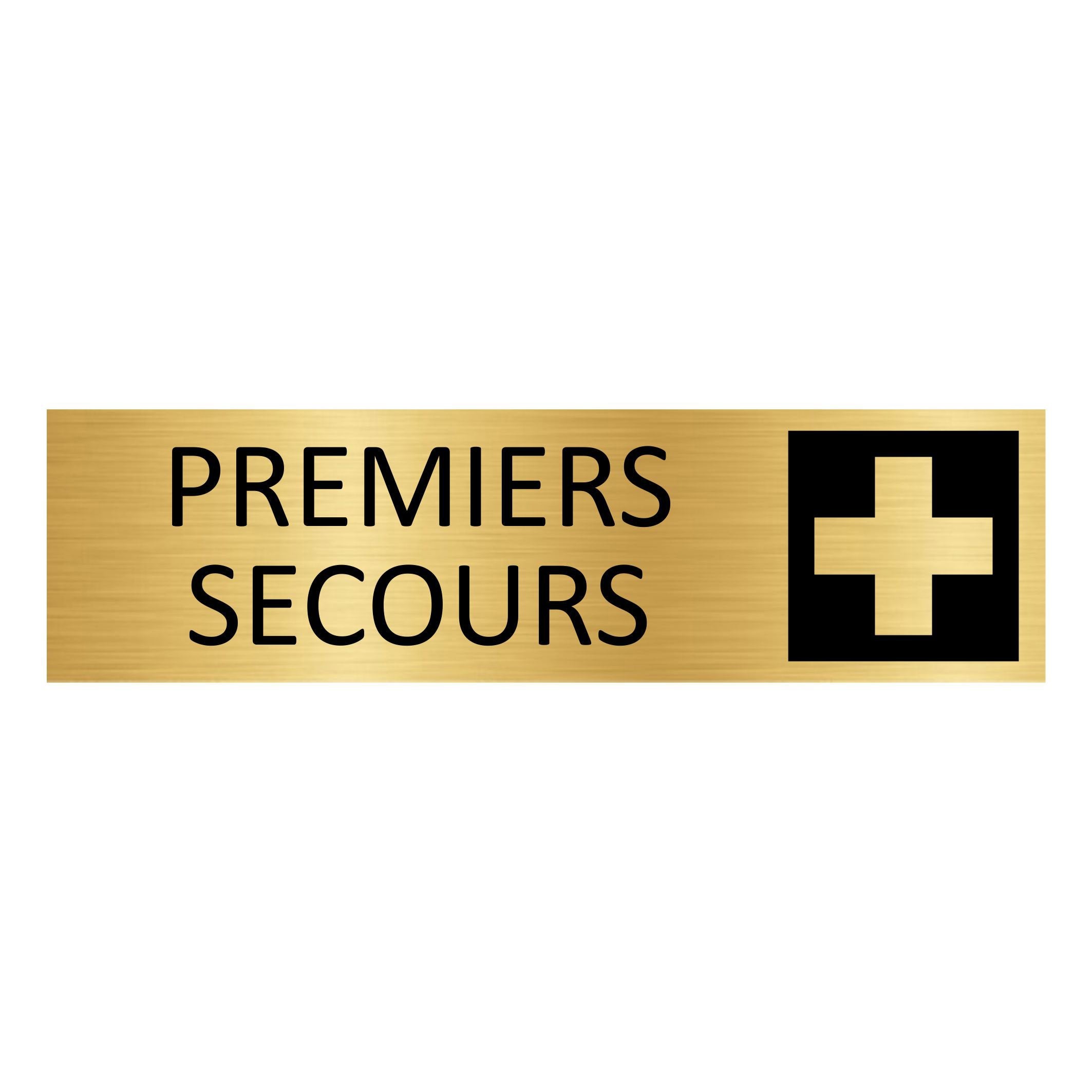 Plaque de porte pictogramme Premiers secours - aluminium doré - 165 x 45 mm - avec ruban adhésif