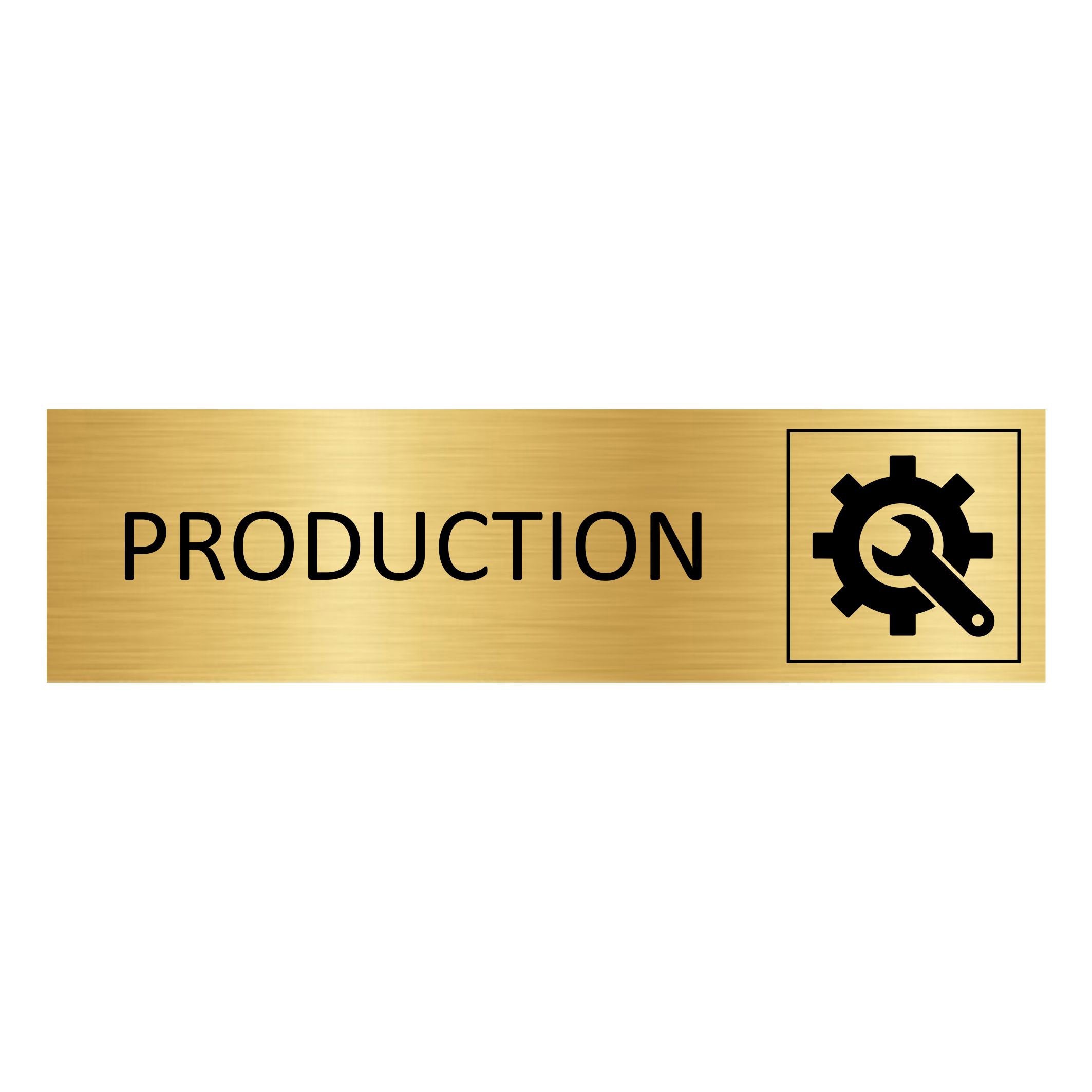 Plaque de porte pictogramme Production - aluminium doré - 165 x 45 mm - avec ruban adhésif
