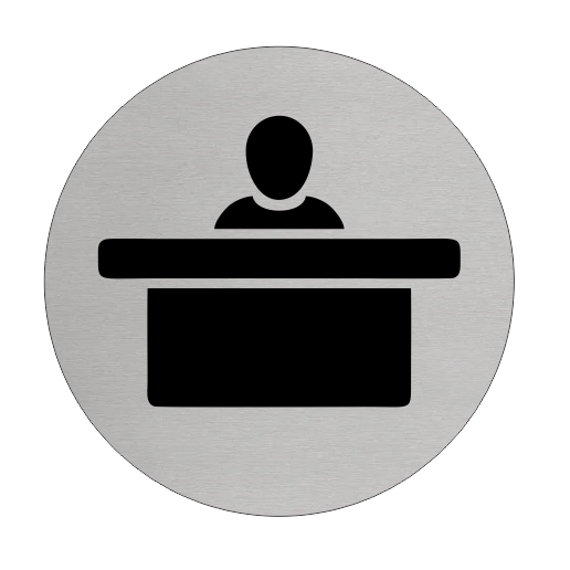 Plaque de porte en aluminium avec ruban adhésif à l’arrière. La plaque mesure 75 mm de rond et a une épaisseur de 0,5 mm. À installer à l’intérieur comme à l’extérieur. En savoir plus