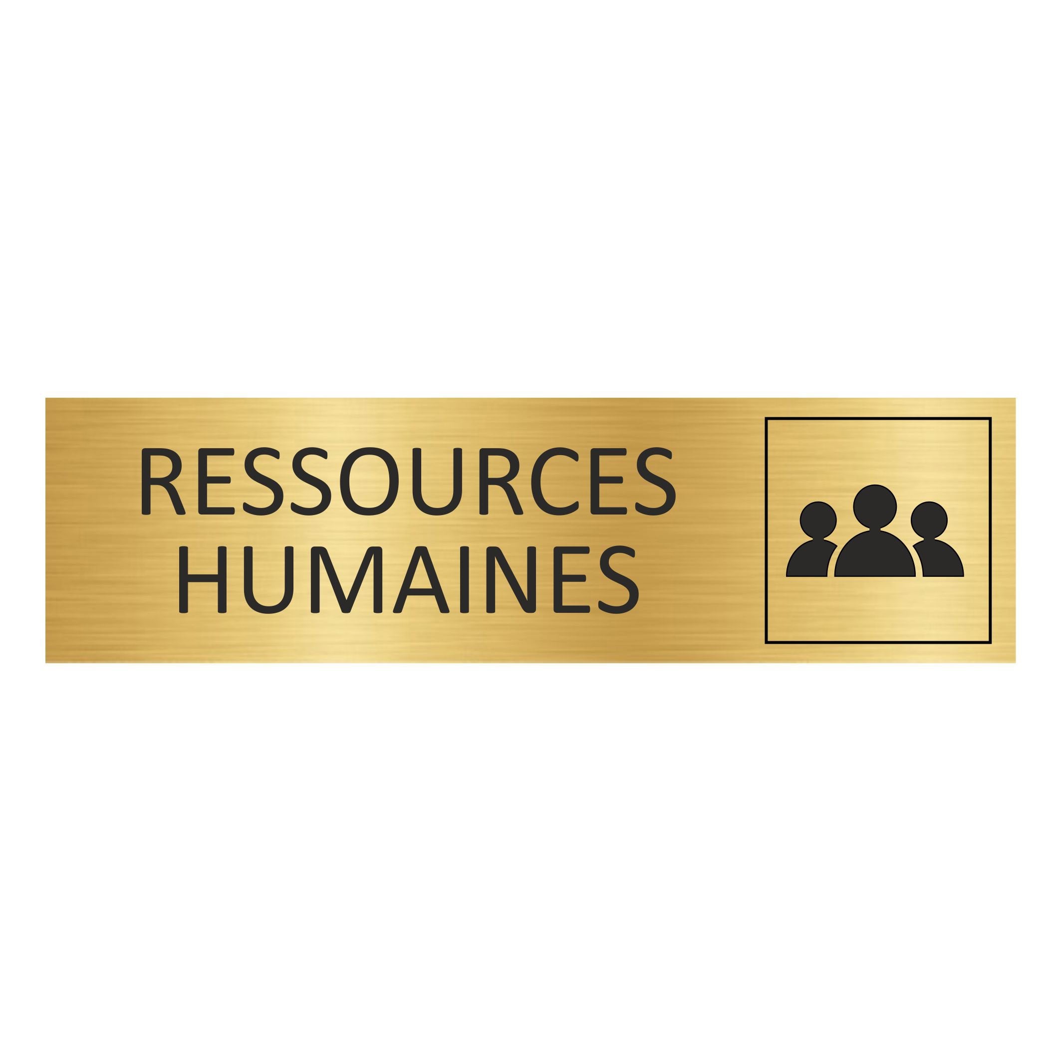 Plaque de porte pictogramme Ressources humaines - aluminium doré - 165 x 45 mm - avec ruban adhésif