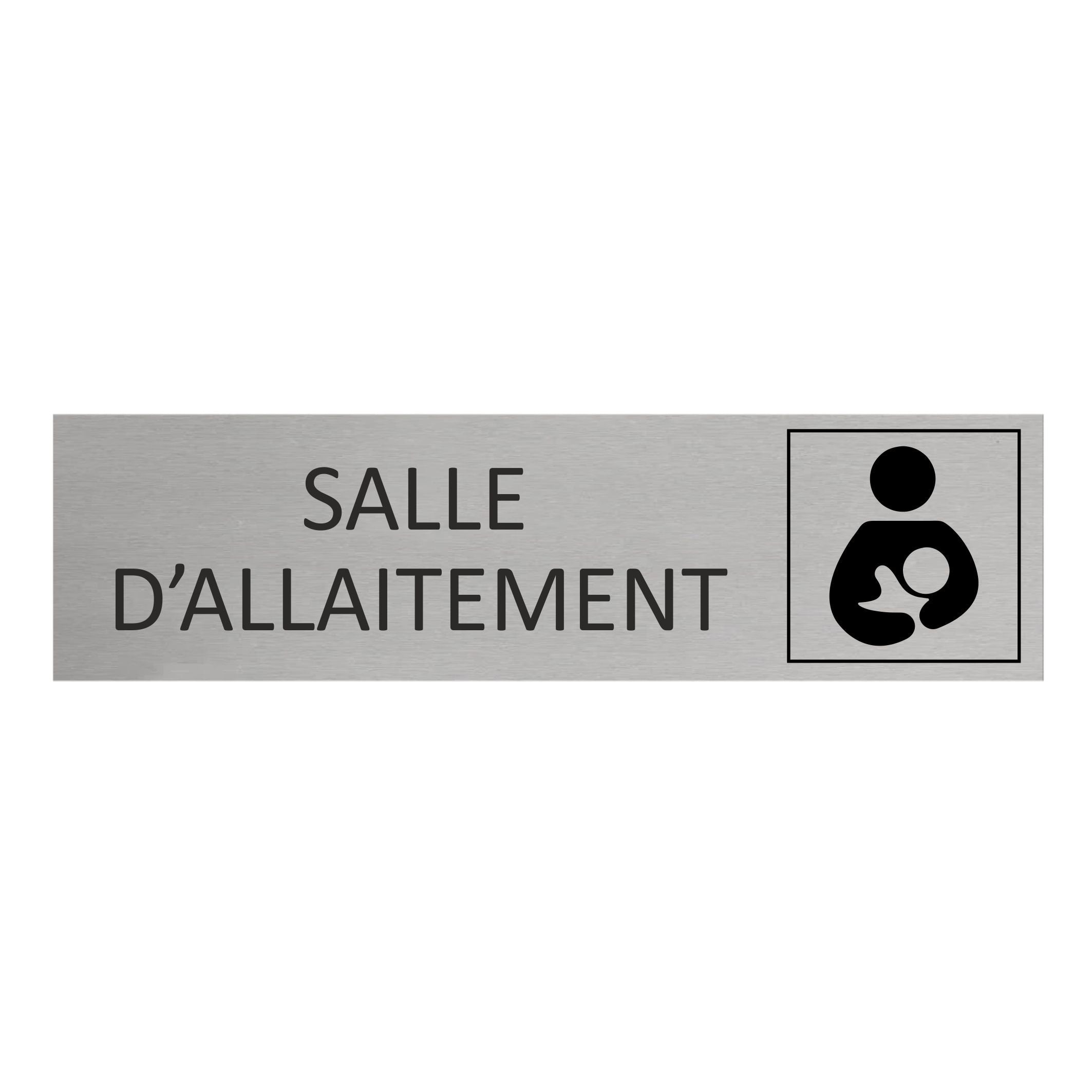 Plaque de porte en aluminium Salle d'allaitement avec ruban adhésif à l’arrière. La plaque mesure 165 x 45 mm et a une épaisseur de 0,5 mm. À installer à l’intérieur comme à l’extérieur. En savoir plus