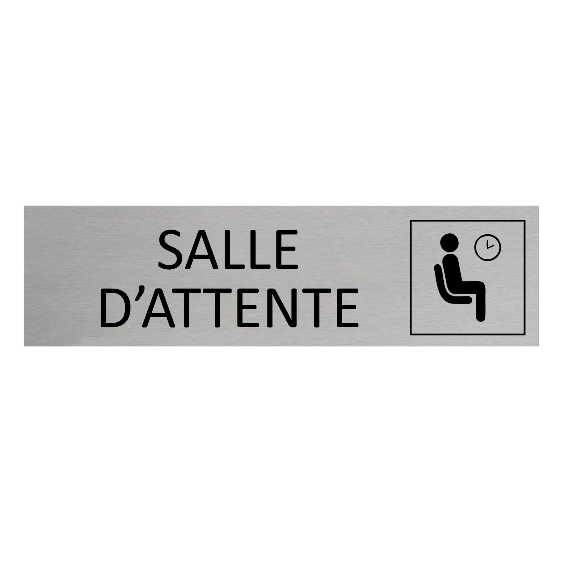 Plaque de porte en aluminium Salle d'attente avec ruban adhésif à l’arrière. La plaque mesure 165 x 45 mm et a une épaisseur de 0,5 mm. À installer à l’intérieur comme à l’extérieur. En savoir plus