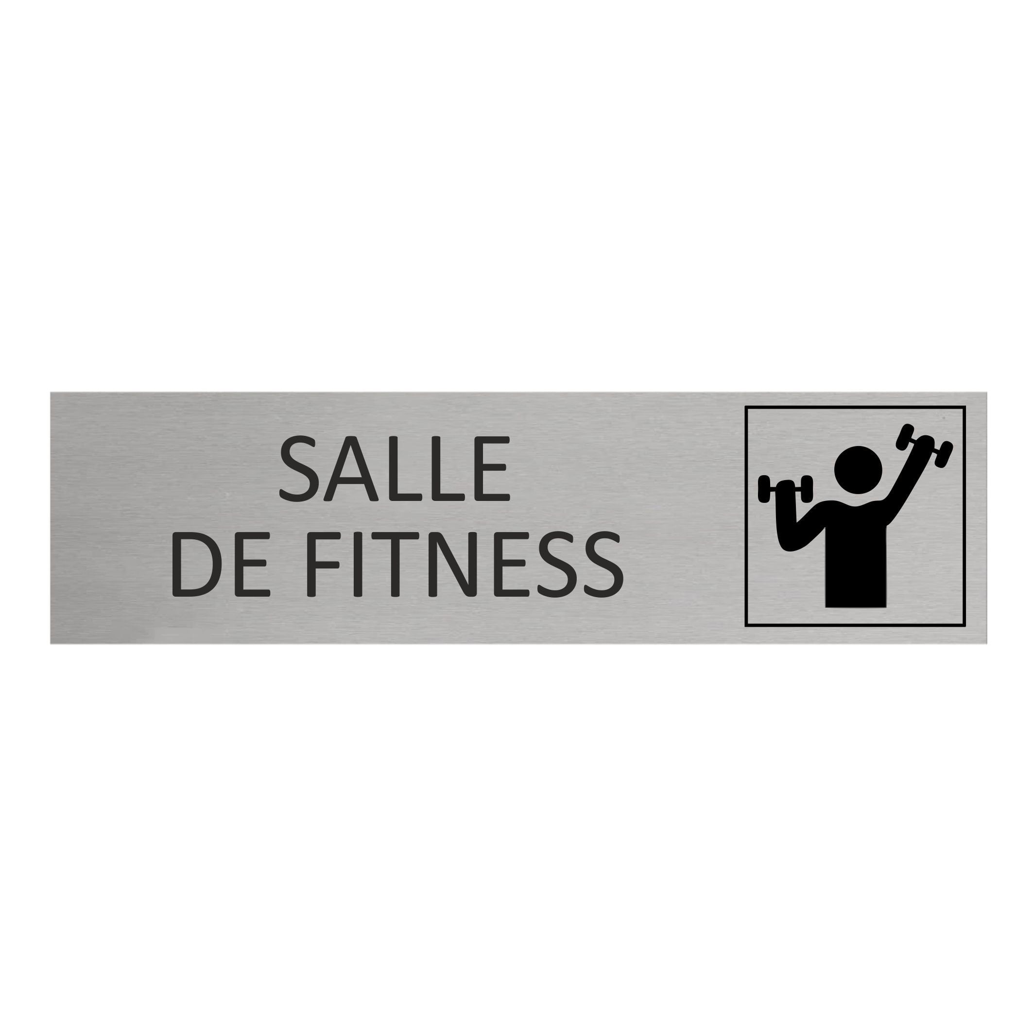 Plaque de porte en aluminium Salle de fitness avec ruban adhésif à l’arrière. La plaque mesure 165 x 45 mm et a une épaisseur de 0,5 mm. À installer à l’intérieur comme à l’extérieur.