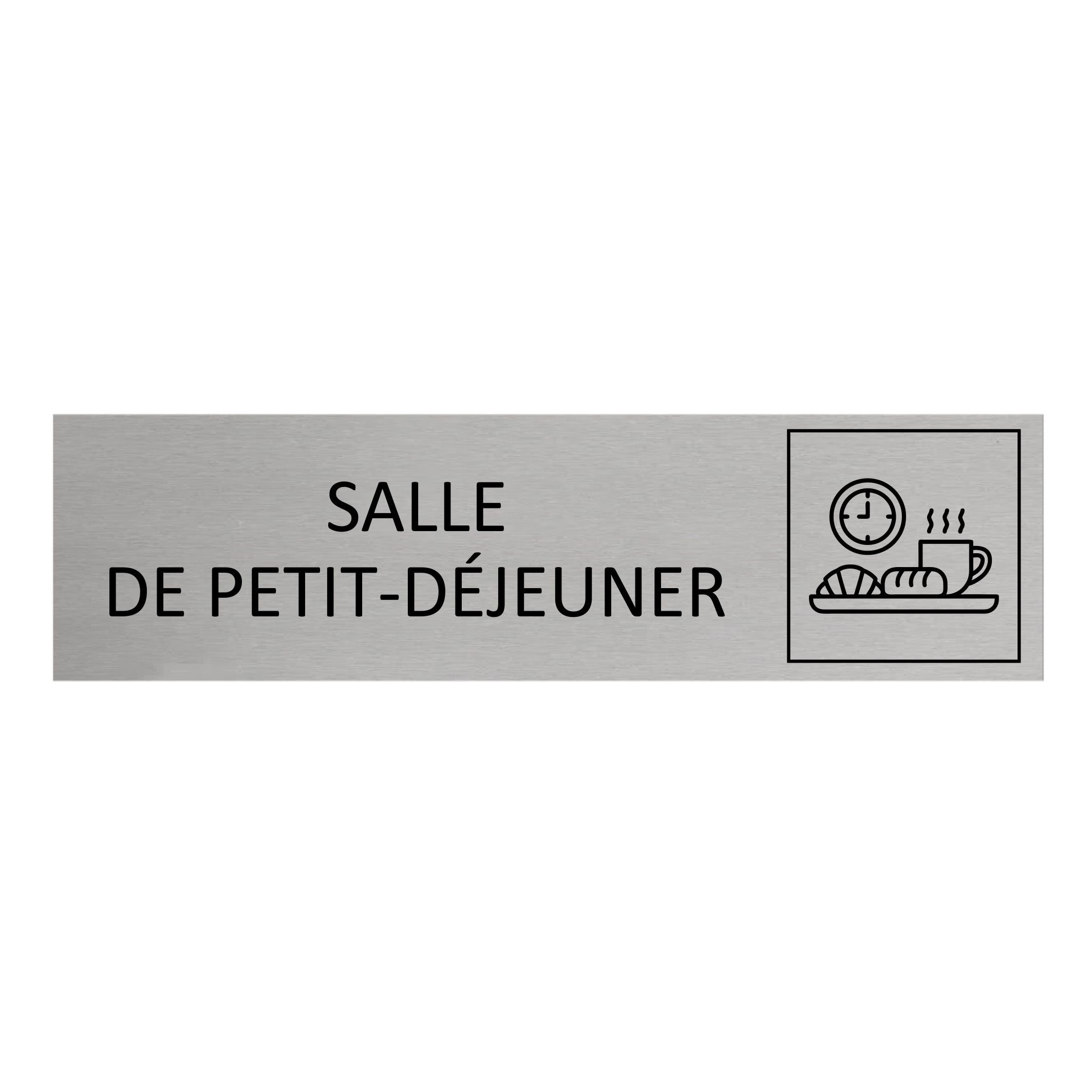Plaque de porte en aluminium Salle de petit-déjeuner avec ruban adhésif à l’arrière. La plaque mesure 165 x 45 mm et a une épaisseur de 0,5 mm. À installer à l’intérieur comme à l’extérieur. En savoir plus