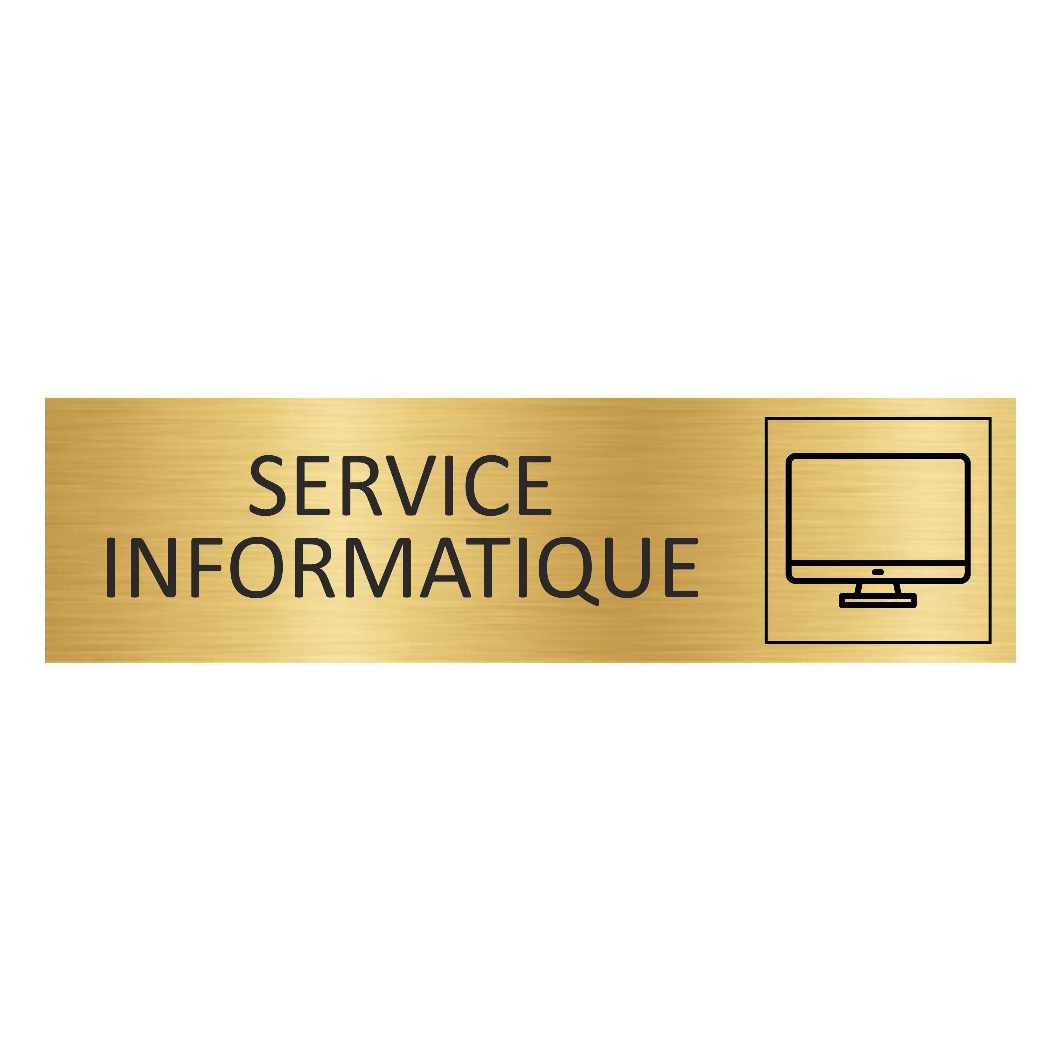 Plaque de porte pictogramme Service informatique - aluminium doré - 165 x 45 mm - avec ruban adhésif