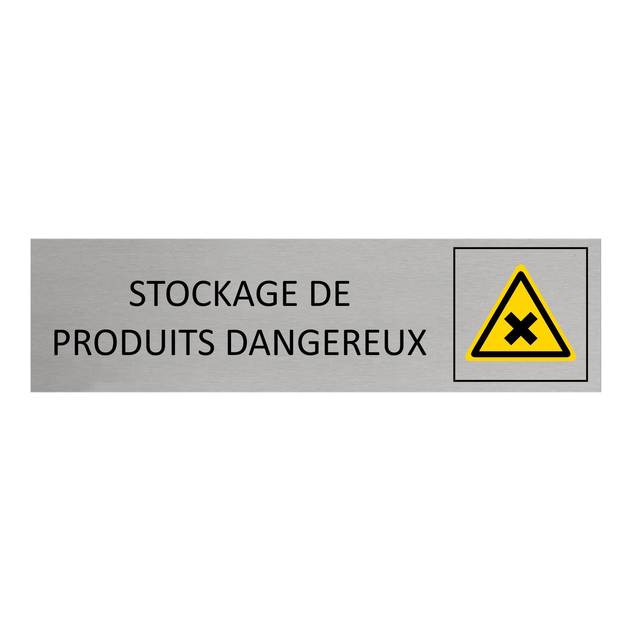 Plaque de porte en aluminium Stockage de produits dangereux avec ruban adhésif à l’arrière. La plaque mesure 165 x 45 mm et a une épaisseur de 0,5 mm. À installer à l’intérieur comme à l’extérieur.