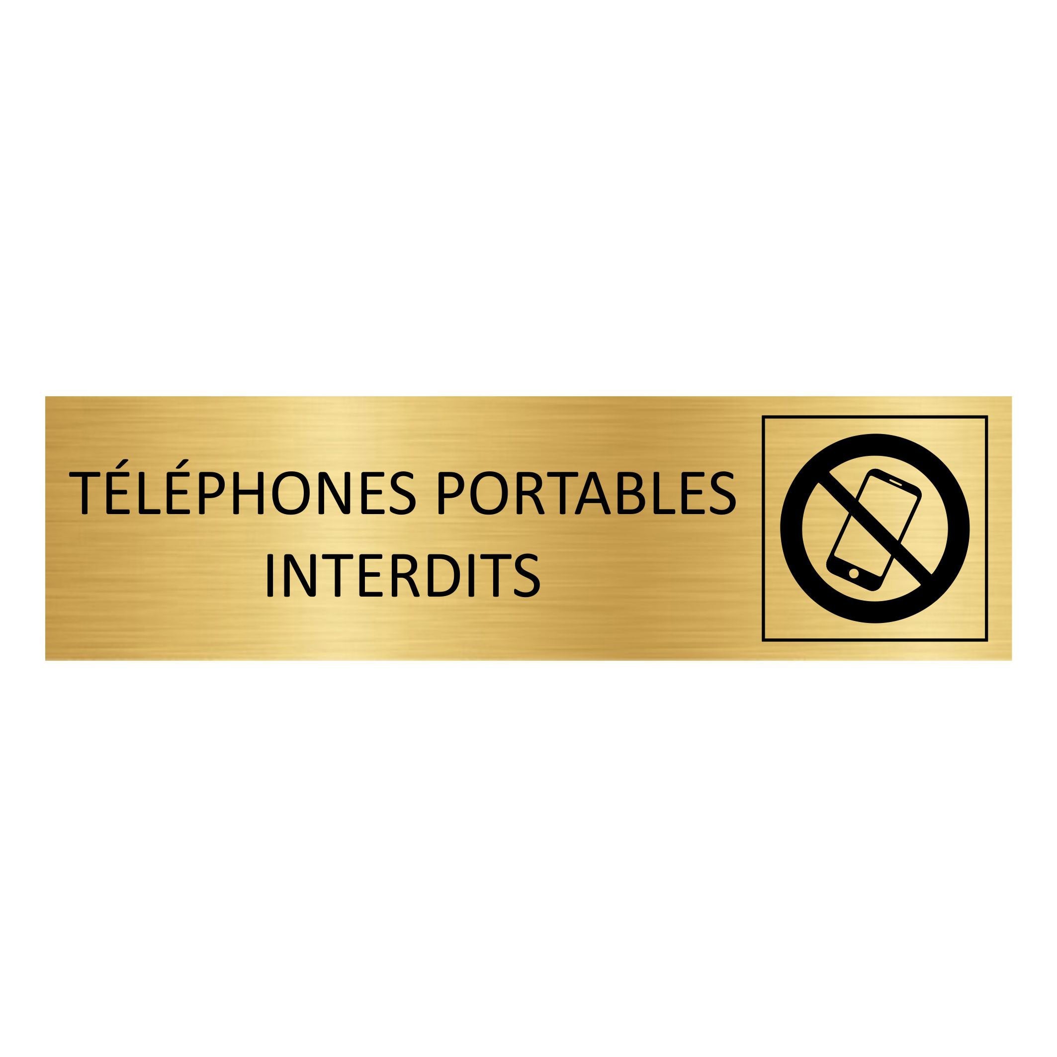 Plaque de porte Téléphones portables interdits - aluminium doré - 165 x 45 mm