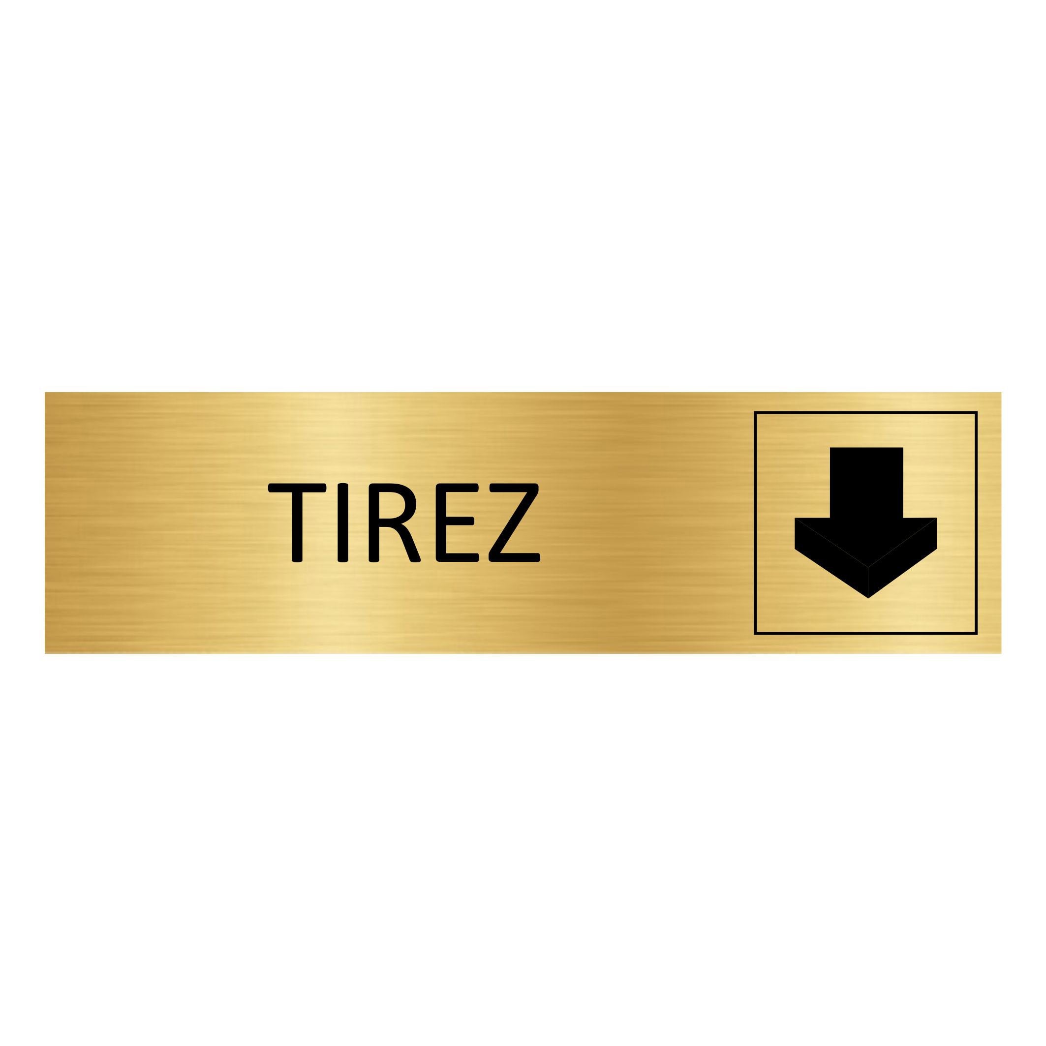 Plaque de porte pictogramme Tirez - aluminium doré - 165 x 45 mm - avec ruban adhésif