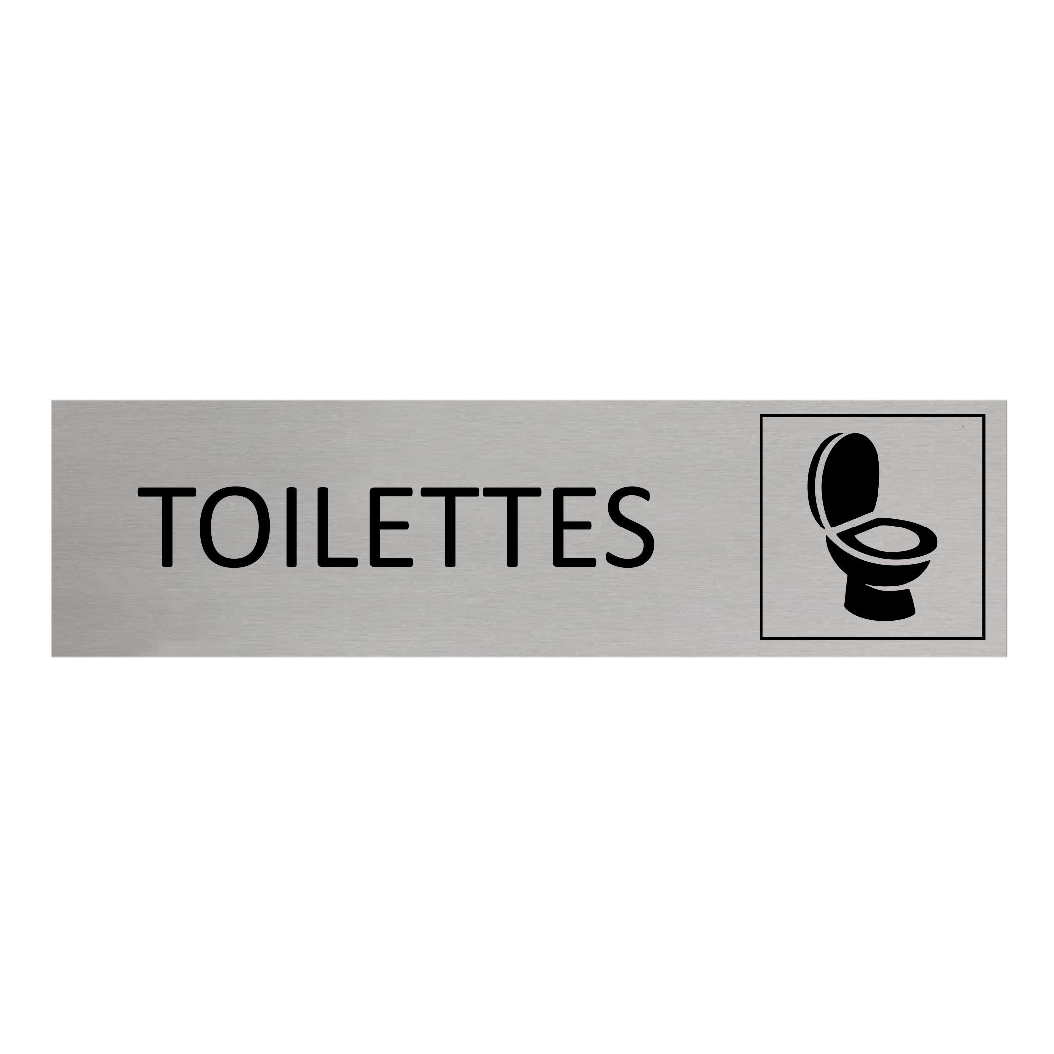Plaque de porte en aluminium Toilettes avec ruban adhésif à l’arrière. La plaque mesure 165 x 45 mm et a une épaisseur de 0,5 mm. À installer à l’intérieur comme à l’extérieur. En savoir plus