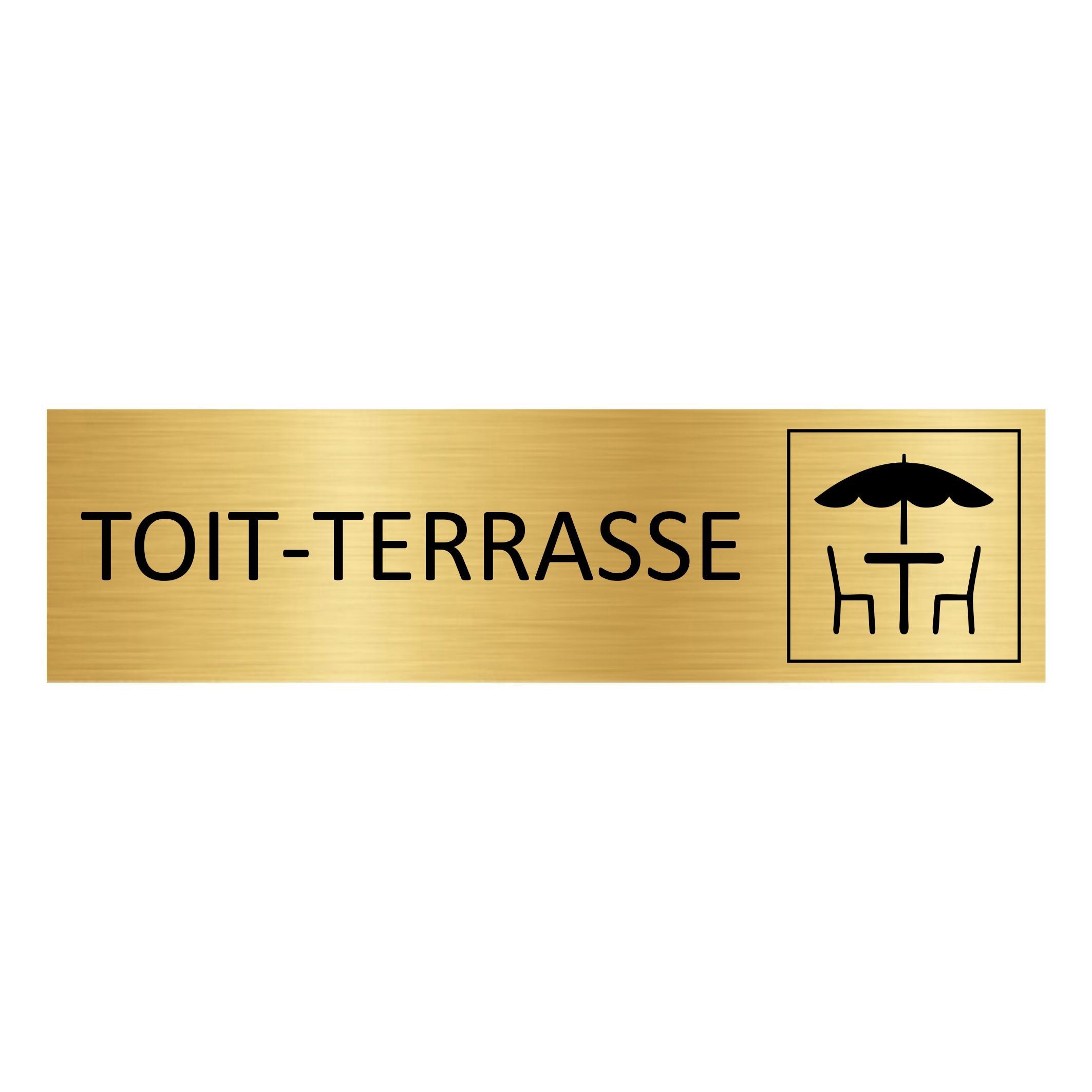 Plaque de porte pictogramme Toit-terrasse - aluminium doré - 165 x 45 mm - avec ruban adhésif