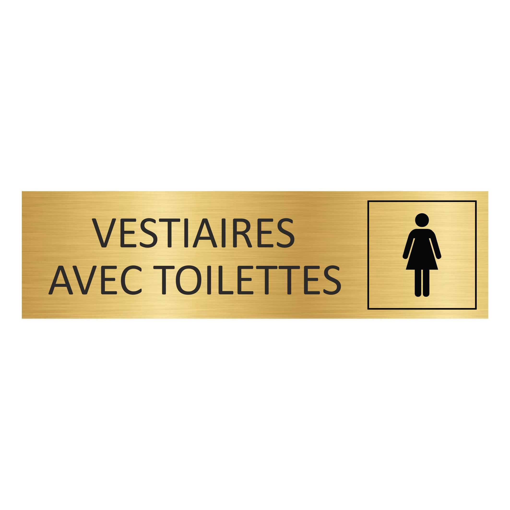 Plaque de porte pictogramme Vestiaires femmes avec toilettes - aluminium doré - 165 x 45 mm - avec ruban adhésif