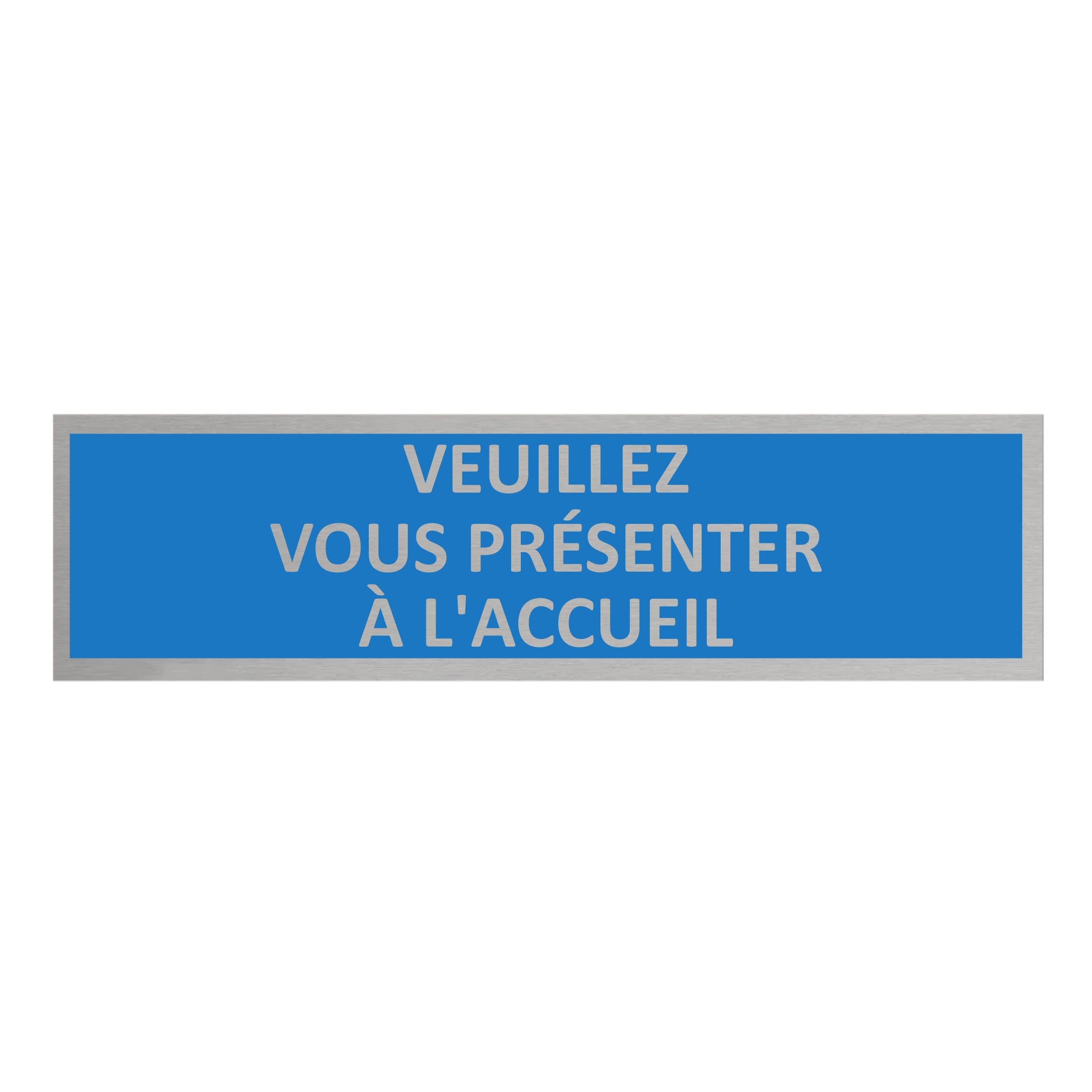 Plaque de porte Veuillez vous présenter à l'accueil - aluminium - 165 x 45 mm - avec ruban adhésif