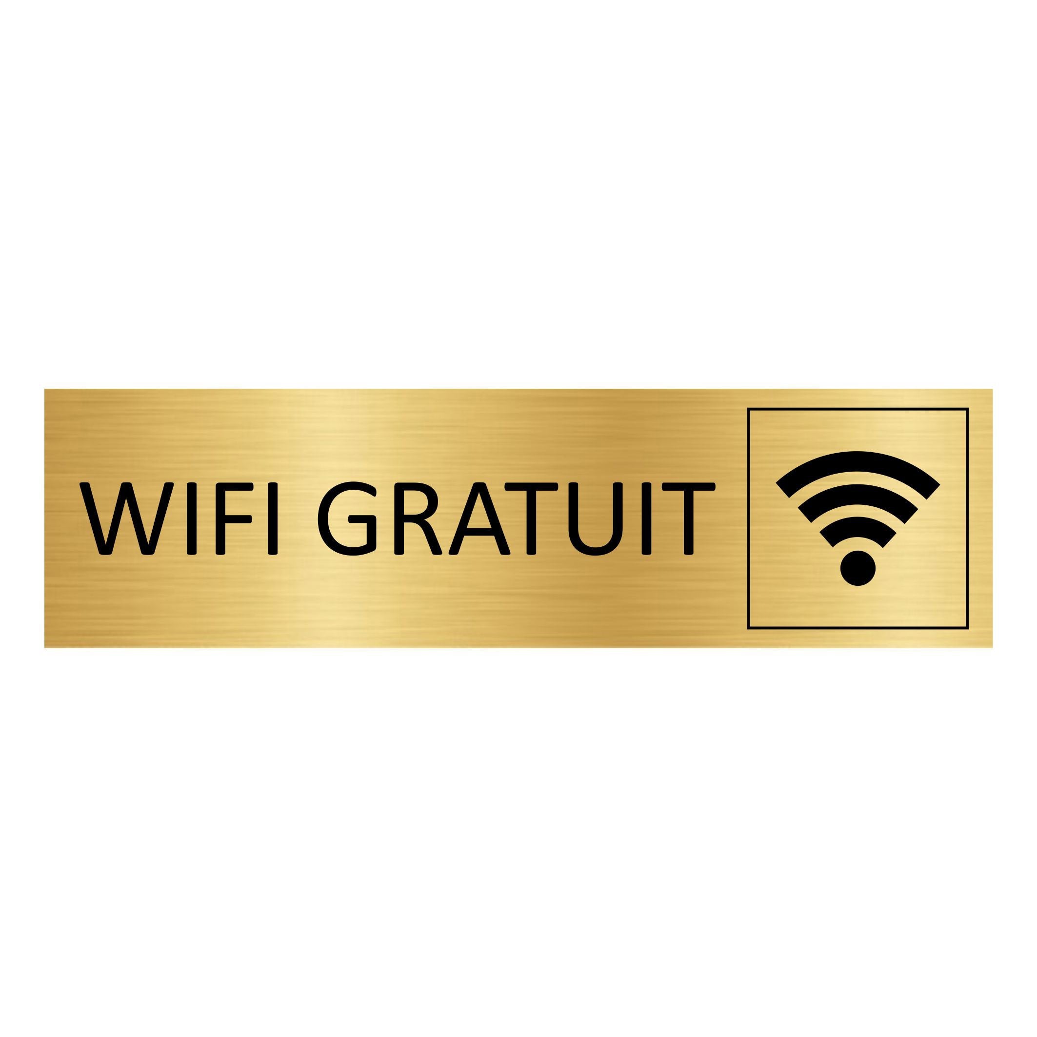 Plaque de porte pictogramme Wifi gratuit - aluminium doré - 165 x 45 mm - avec ruban adhésif