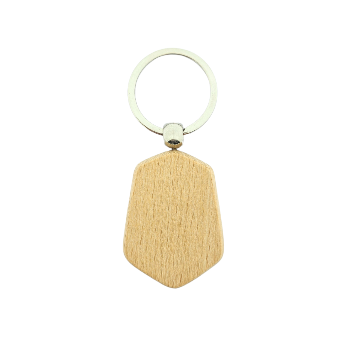 Porte-clés en bois en forme d'hexagone avec anneau. Le porte-clés mesure 35 x 48 mm, possible de le faire graver avec une imprimante laser. Vendu par pièce.