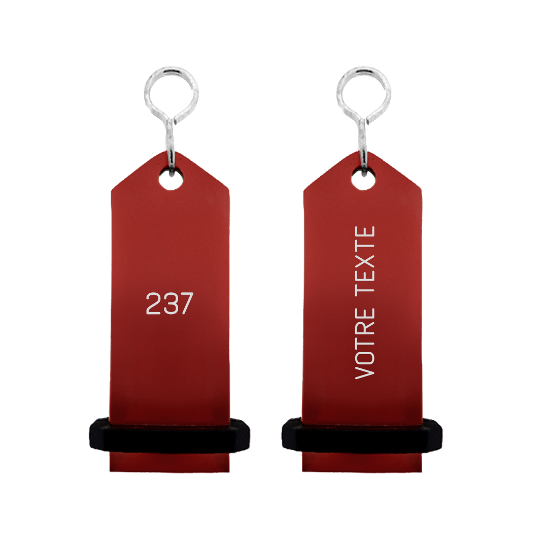 Porte-clés hôtel Midi Boomerang rouge personnalisé - aluminium - par pièce - 75 x 30 mm - avec protection