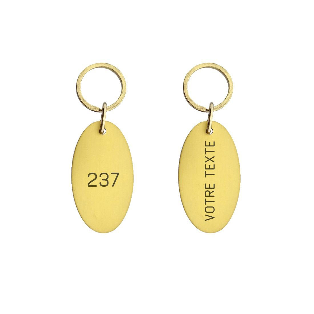 Personnalisez le Victor Ovale avec votre texte, logo ou nom de votre hôtel. La gravure se fait en couleur noire, choisissez ce que vous souhaitez graver sur le recto et sur le verso du porte-clés. De plus, vous pouvez chosir le type de police à faire graver, afin d'avoir un porte-clés Victor Ovale unique pour votre établissement.