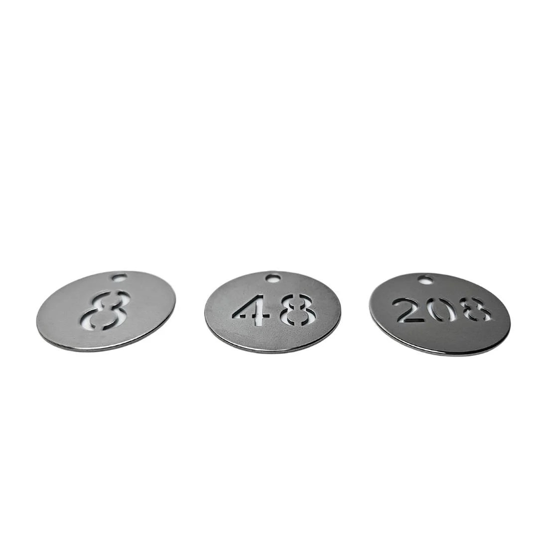 Porte-clés numéroté en acier inoxydable, avec un diamètre de 30 mm. Choisissez entre plusieurs séries de numéros, idéal pour des secteurs industriels. Durable, résistant et polyvalent. Disponible en plusieurs numéros.