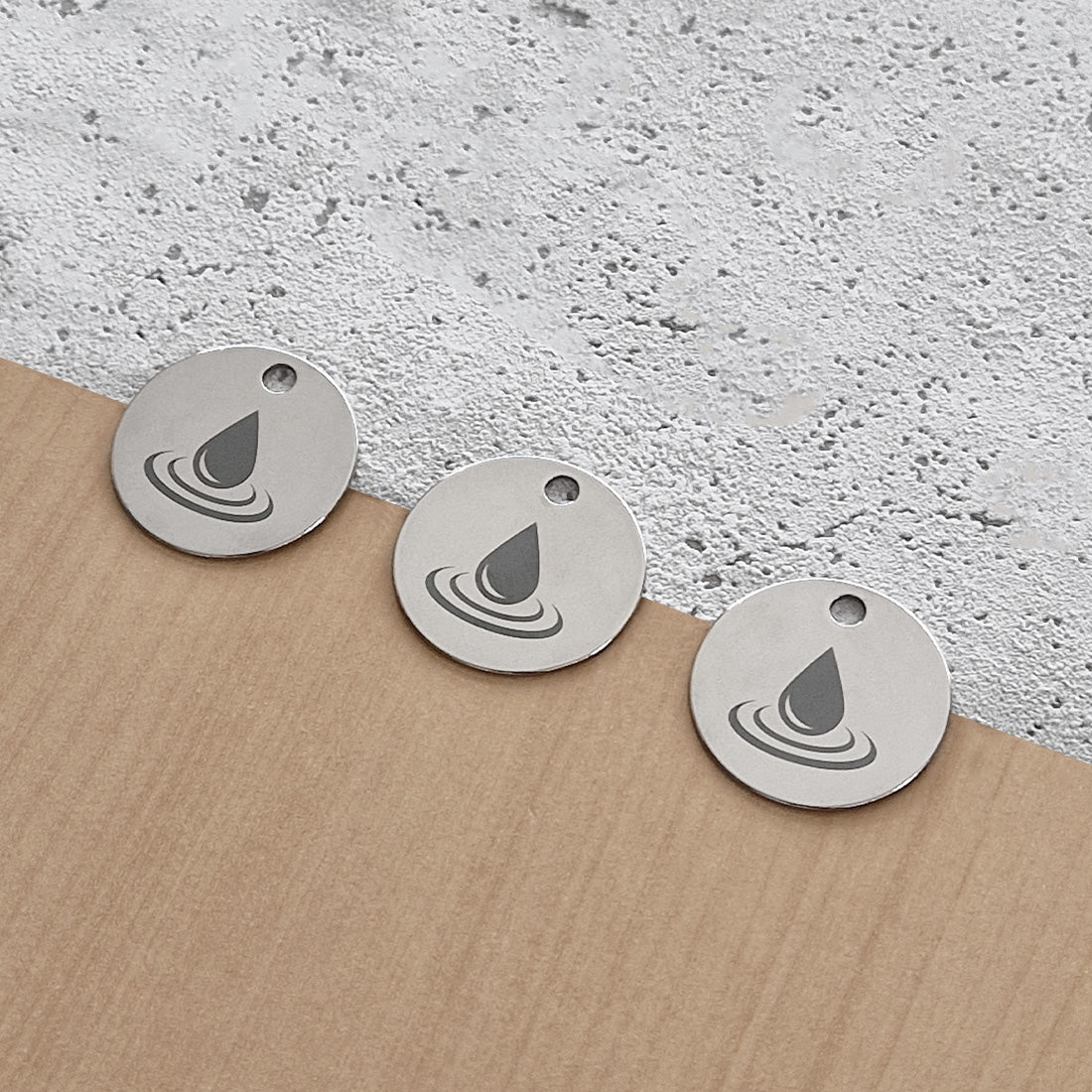 Porte-clés en acier inoxydable, avec un diamètre de 30 mm. Personnalisez ce porte-clés rond avec votre design, le porte-clés a une épaisseur de 1 mm. Vous pouvez sélectionner plusieurs options de crochets ou un anneau de porte-clés pour le fixer. Vendu par pièce. En savoir plus