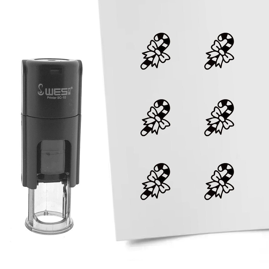 Tampon encreur avec motif canne de Noël de 1 cm rond. Six couleurs de disponibles. Vous pouvez utiliser ce tampon encreur pour des cartes de collection ou des cartes de fidélité. Le tampon encreur dispose d'une cassette d'encrage interne.
