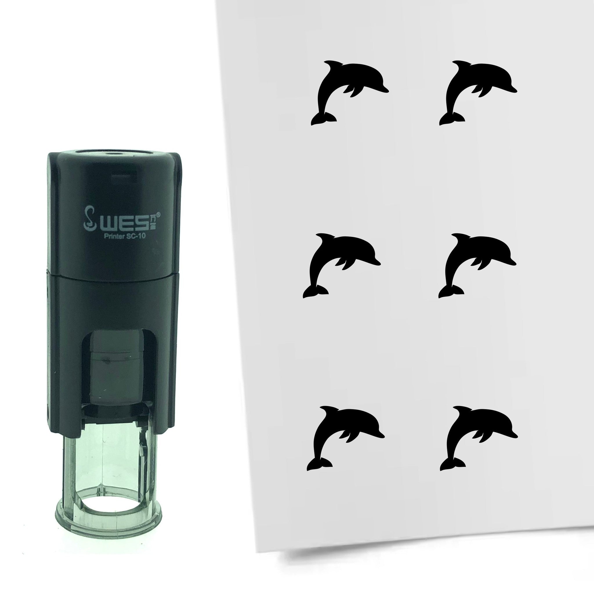 Tampon encreur avec motif dauphin de 1 cm rond. Six couleurs de disponibles. Vous pouvez utiliser ce tampon encreur pour des cartes de collection ou des cartes de fidélité. Le tampon encreur dispose d'une cassette d'encrage interne.
