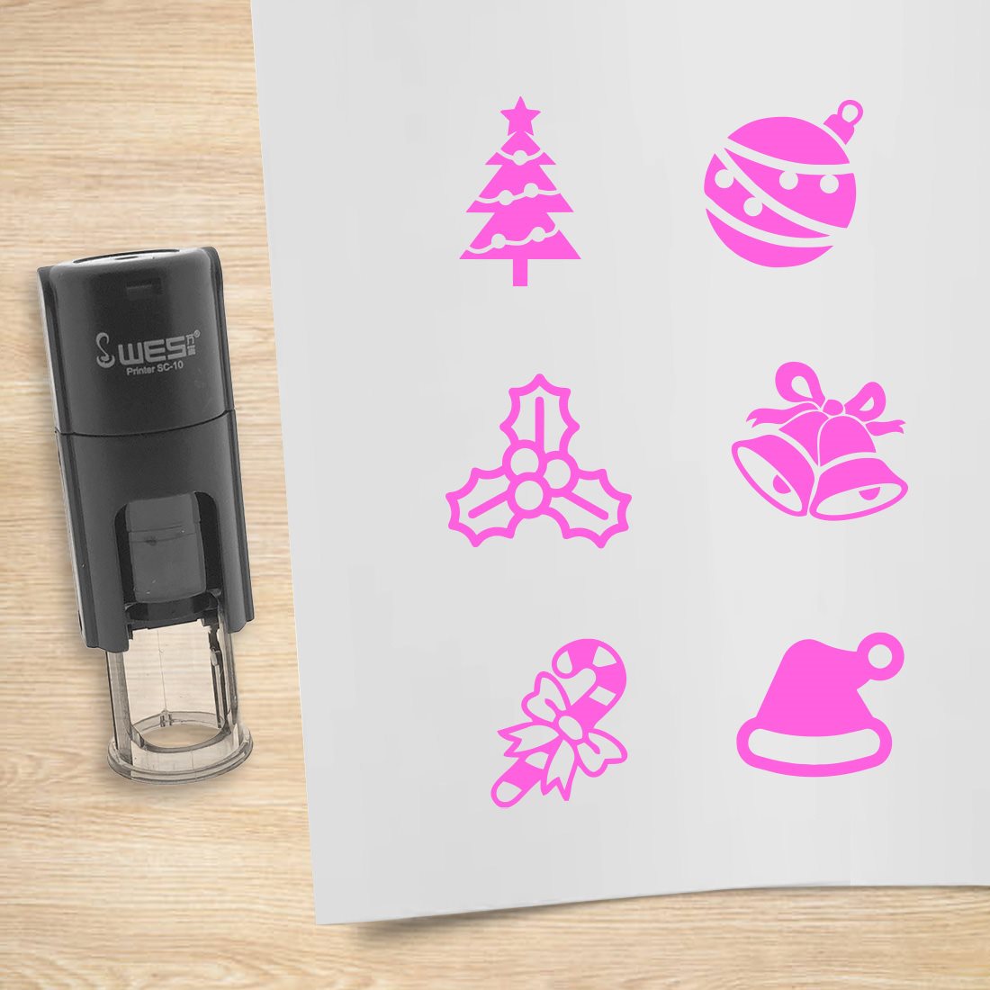 Tampons encreurs avec plusieurs motifs de Noël de 1 cm rond. Six couleurs de disponibles. Vous pouvez utiliser ce tampon encreur pour des cartes de collection ou des cartes de fidélité. Le tampon encreur dispose d'une cassette d'encrage interne.