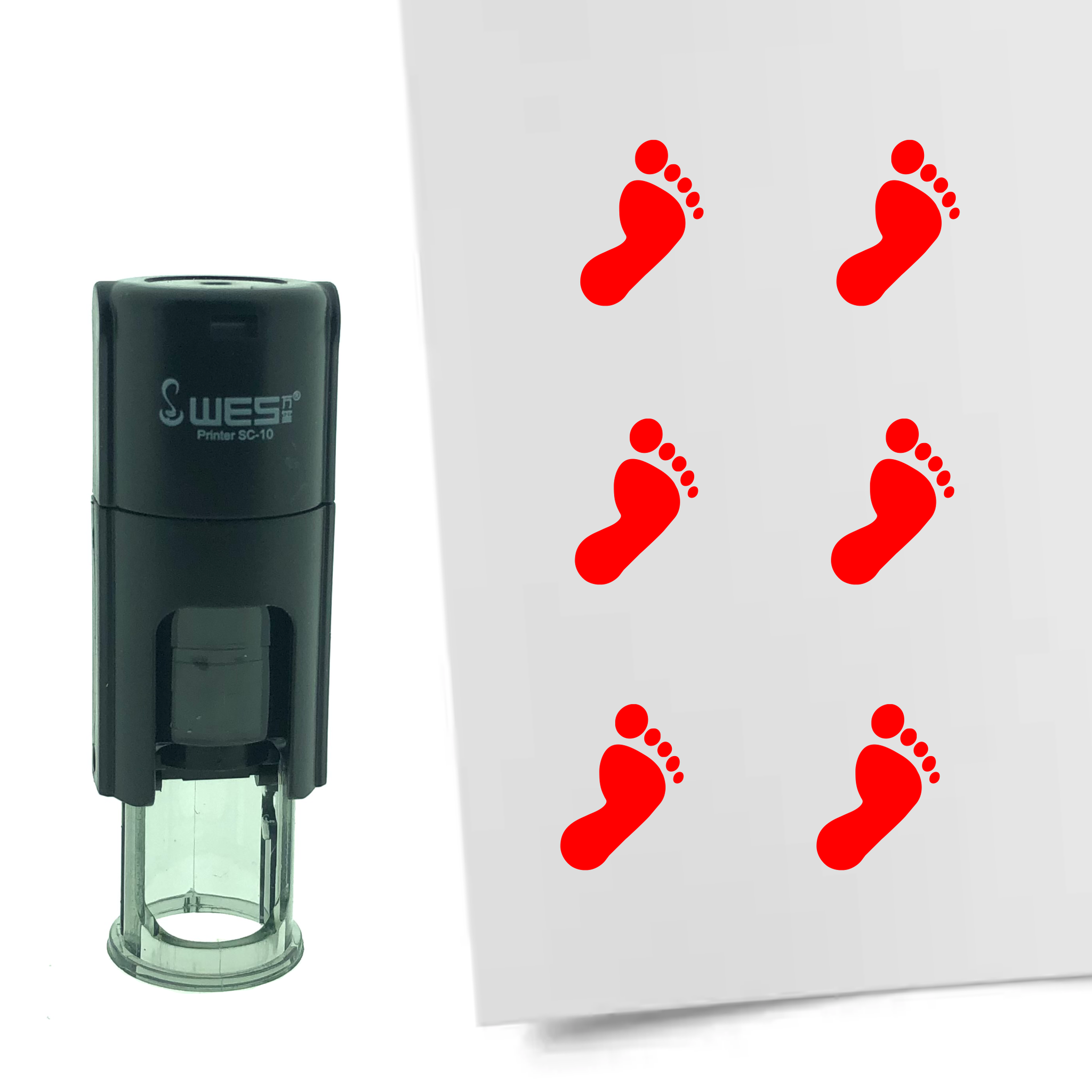 Tampon encreur avec motif pied de 1 cm rond. Six couleurs de disponibles. Vous pouvez utiliser ce tampon encreur pour des cartes de collection ou des cartes de fidélité. Le tampon encreur dispose d'une cassette d'encrage interne.