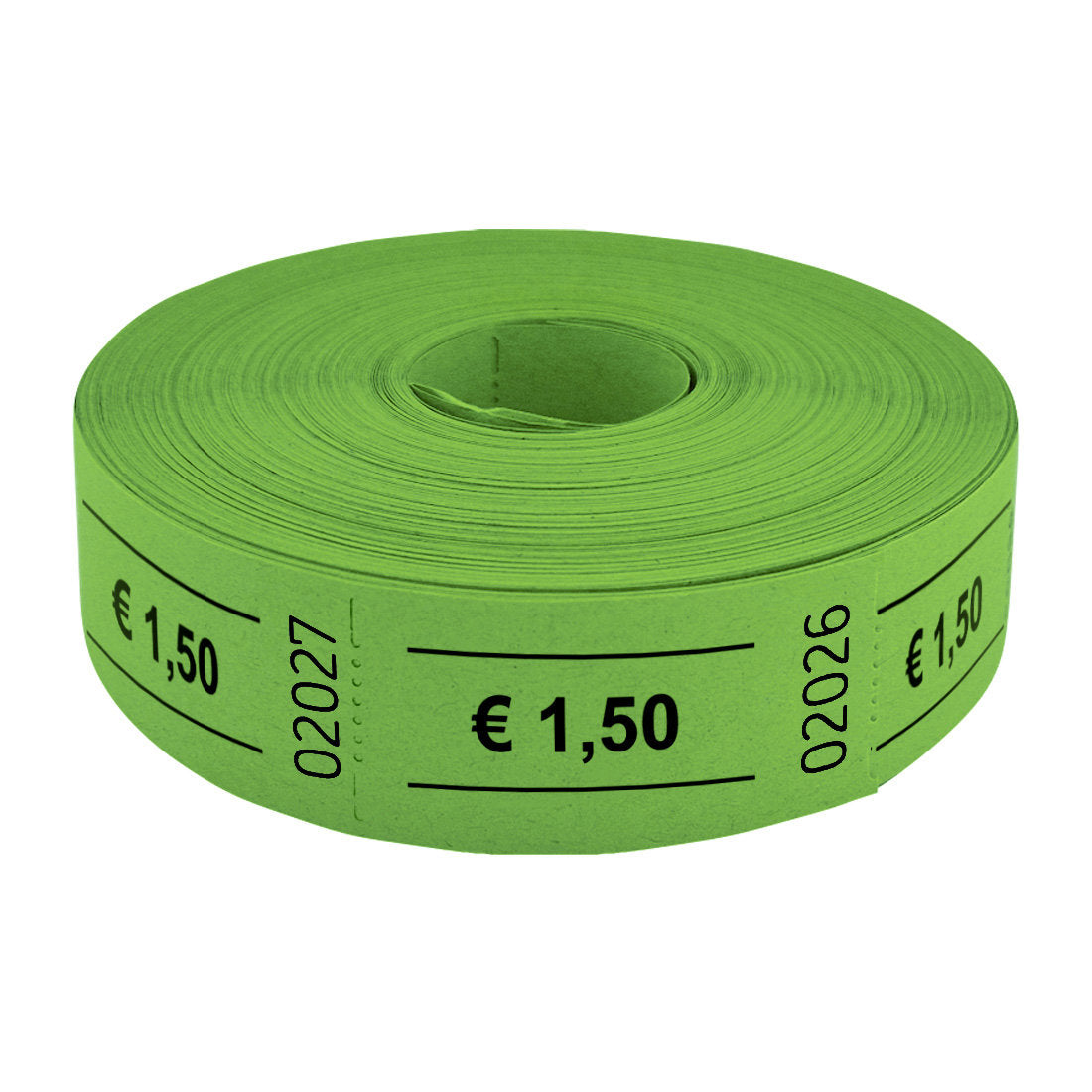 Découvrez les tickets pour buvette avec 1,50 € en vert, adaptés pour des événements ou des fêtes. Les tickets mesurent 57 x 30 mm et sont perforés. Vendus par 1000 tickets. En savoir plus