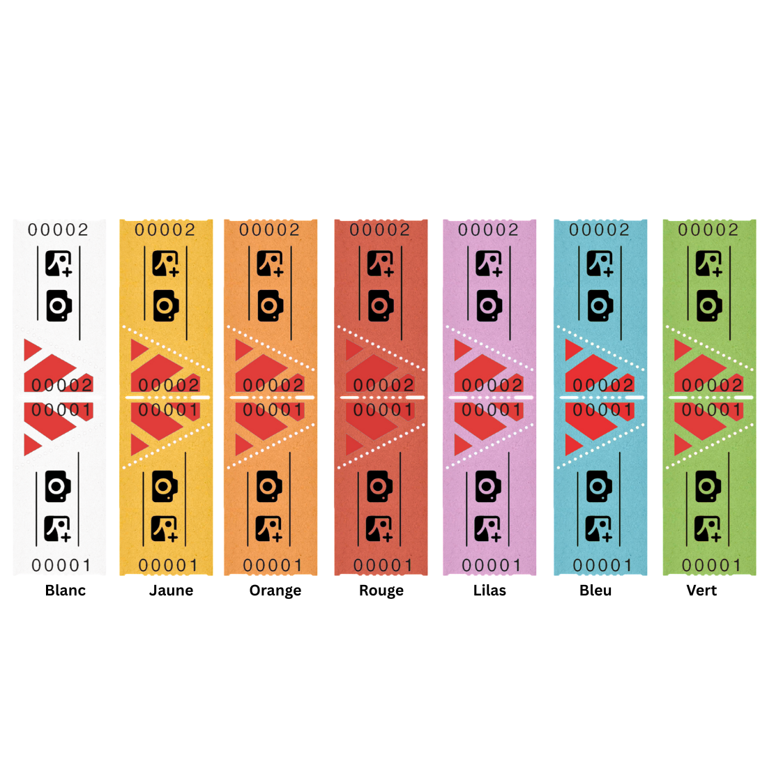 Tickets d'entrée personnalisés sur rouleau en différentes couleurs- 57 x 30 mm - 1000 tickets